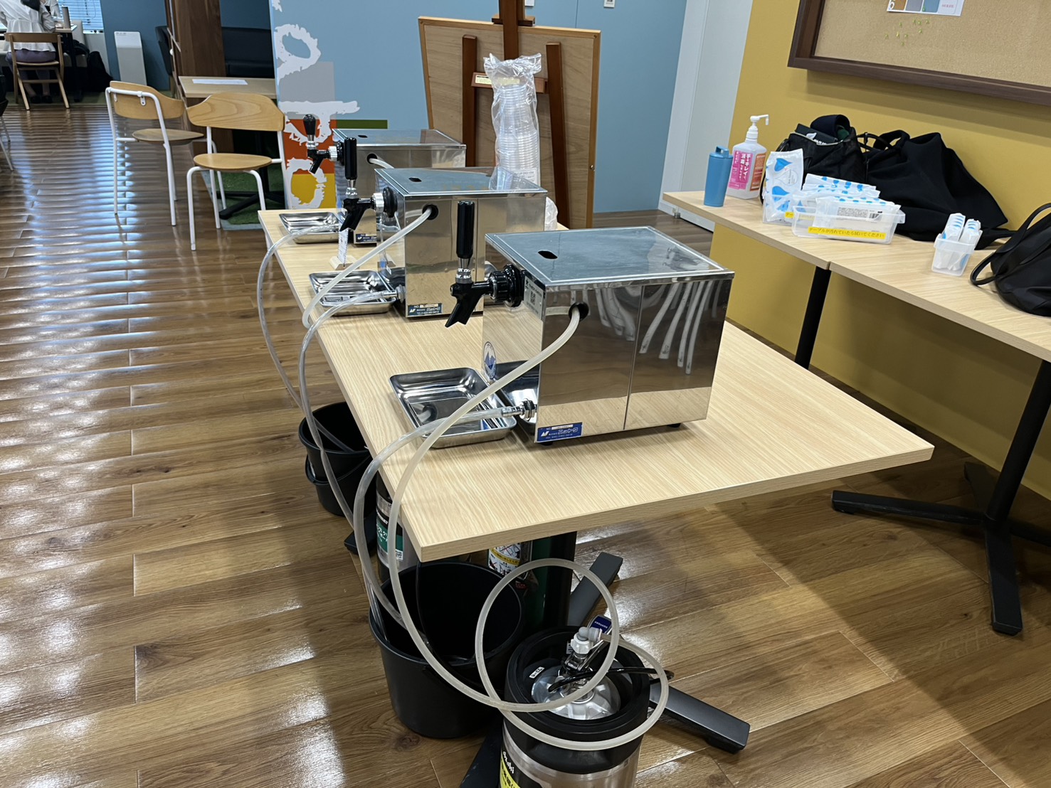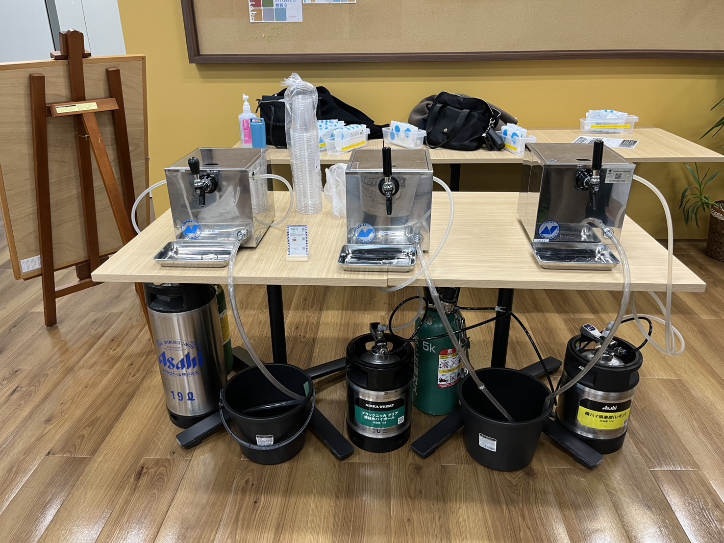 会場は80名でも広々使える広さになっており、お酒コーナーにはサーバー3種類は必要!といった感じでした。
