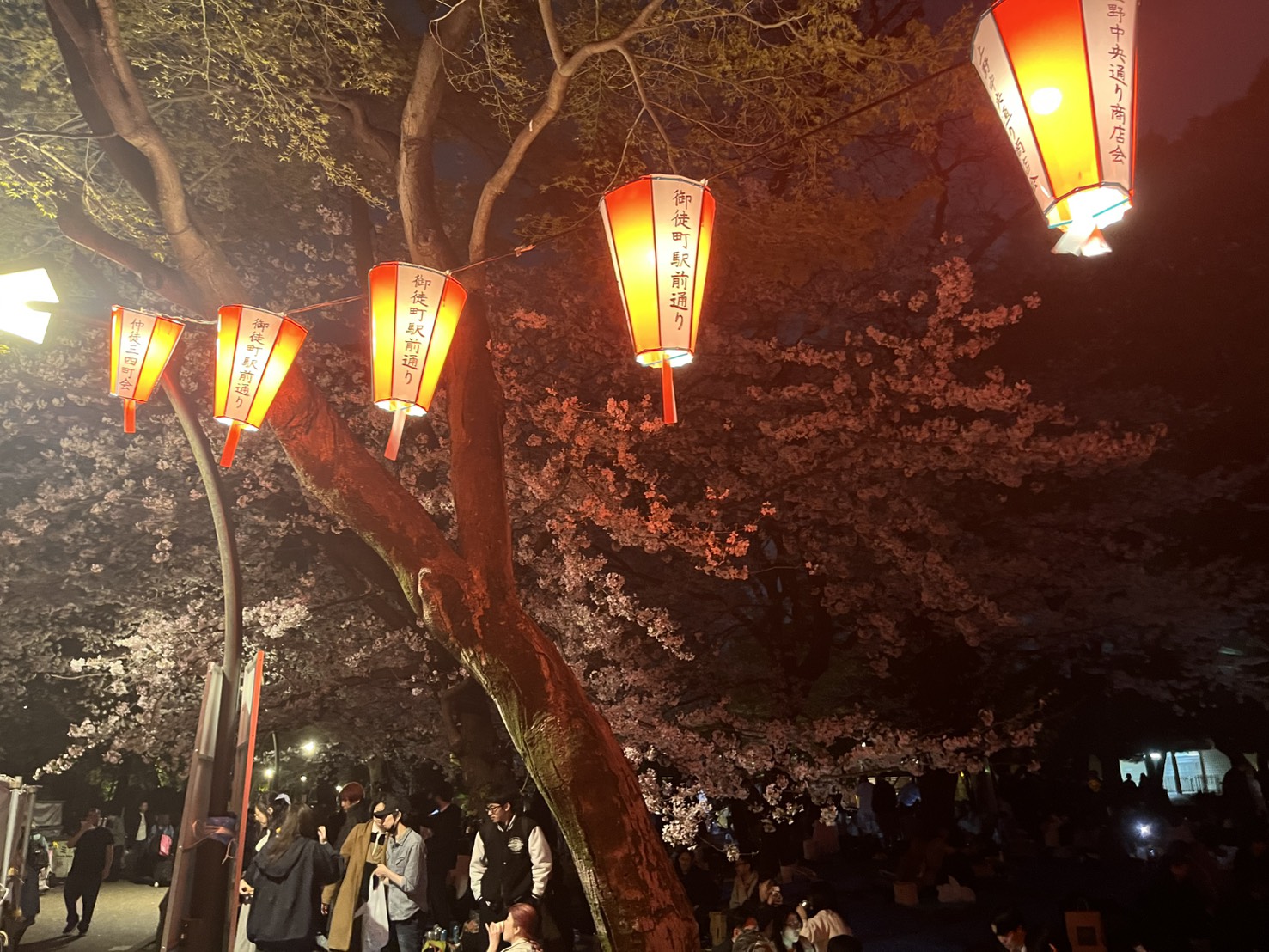 昼から始まった花見は、そのまま夜まで続き、桜のライトアップとともに、終始和やかで楽しそうな時間が流れていました。